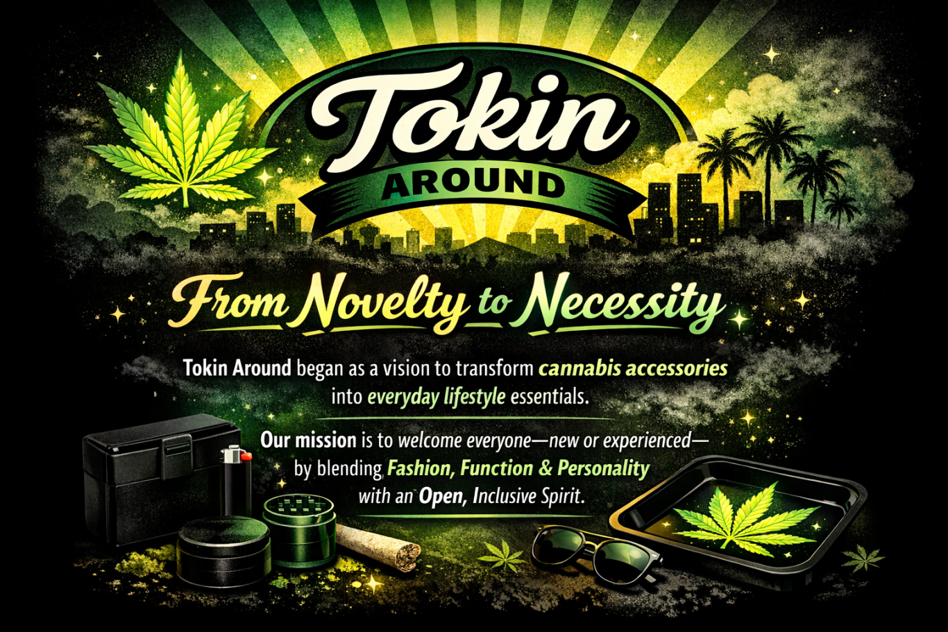 Tokin Around offers a vibrant collection of cannabis-inspired products crafted for seamless daily use. Embracing creativity and inclusivity, each piece is designed to spark conversation and style, making cannabis culture approachable and fashionable.